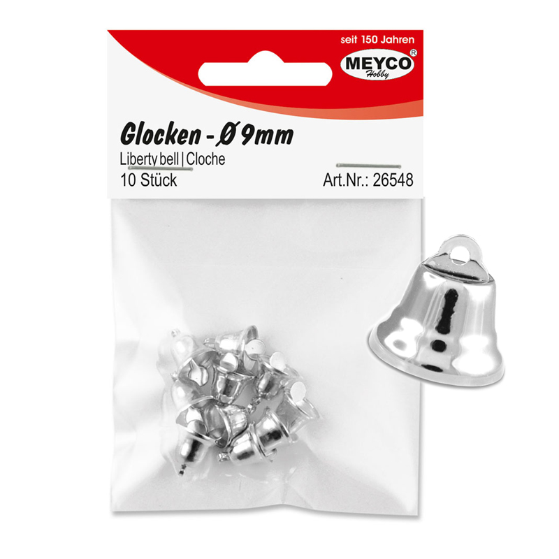 Metallglöckchen silber, ca. 9mm, 10 Stück - Packung