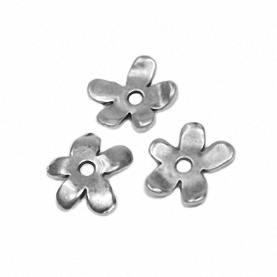 Diese flache Blume oder Blüte kann für Wechselringe verwendet werden (Mit T-Stift). Die Metallperle in Blumenform ist nickelfrei und versilbert. Die Blume hat leicht nach oben gebogene Spitzen und wirkt daher sehr plastisch.
