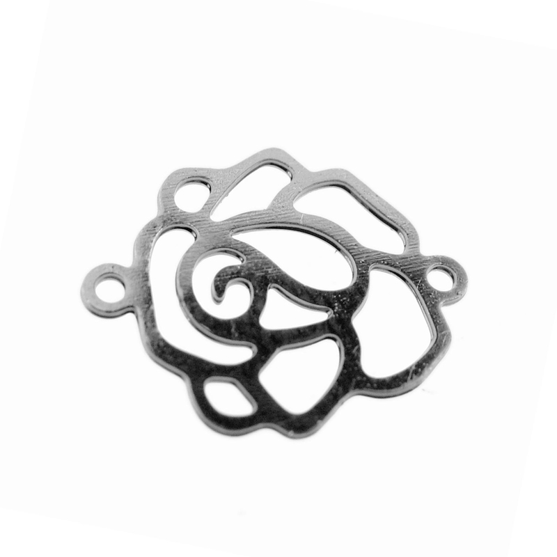 Metallverbinder mit 2 Ösen Rosenblüte, versilbert, ca. 16x13mm, Preis pro Stück