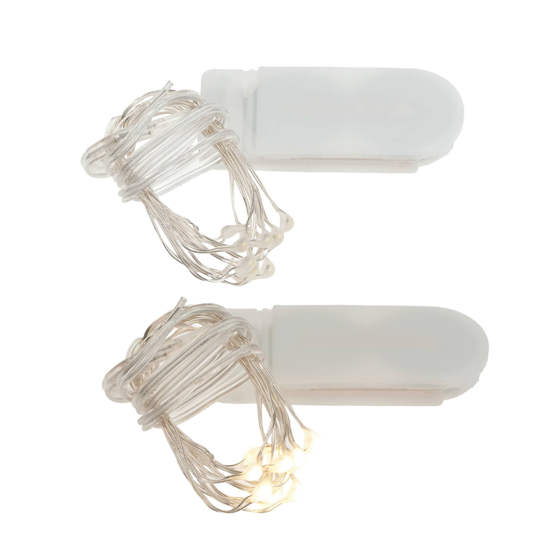 Praktische Microlichterkette mit trasparentem Kabel und 20 LED's. Ein kleines Batteriefach mit Knopfzellen CR2032 reicht, um die Kette unabhängig von der Stromquelle leuchten zu lassen. 4 Knopfzellen sind inbegriffen!