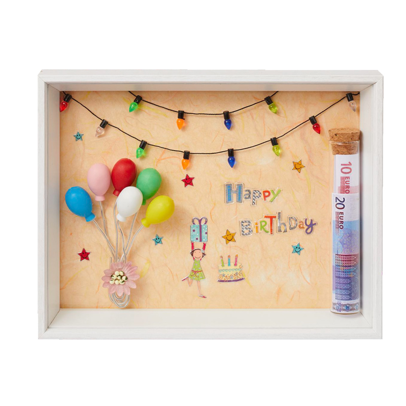 Diese Lichtergirlande ist doch herrlich für die Wichteltür, in Puppenstuben, für Collagen und vielem mehr. Die süße Girlande kann zwar nicht leuchten, macht aber trotzdem Partystimmung. Wirkt auch super in 3D-Rahemn. Sie erhalten die Lichtergirlande mit 18 Lämpchen.