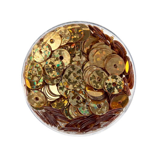 Wunderschöne Pailletten in gold Flitter glatt. Die kleinen Kunststoffplättchen sind rund und eignen sich hervorragend zum Annähen an Kleidungsstücken. Auch für Kissen und andere Textilien einsetzbar.