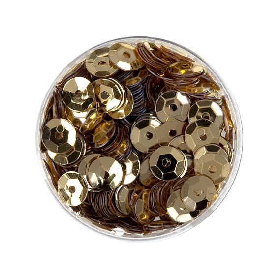 Wunderschöne Pailletten in gold Schüsselform. Die kleinen Kunststoffplättchen sind rund und eignen sich hervorragend zum Annähen an Kleidungsstücken. Auch für Kissen und andere Textilien einsetzbar.