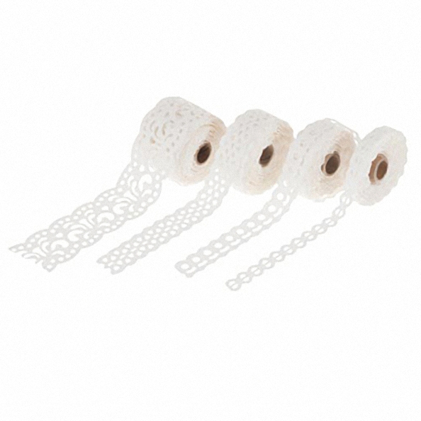 Spitzenband aus Papier, 4 Breiten, je 2m, weiß, 1 Set