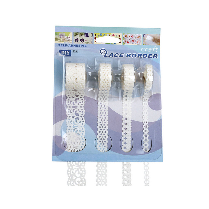 Dieses Spitzenband ermöglicht ein leichtes Verzieren von Geschenken, Karten oder Bucheinbände. Die Bänder sind selbstklebend und können daher ganz einfach angebracht werden. Sie erhalten 4 unterschiedliche Breiten und Muster mit jeweils 2m.
