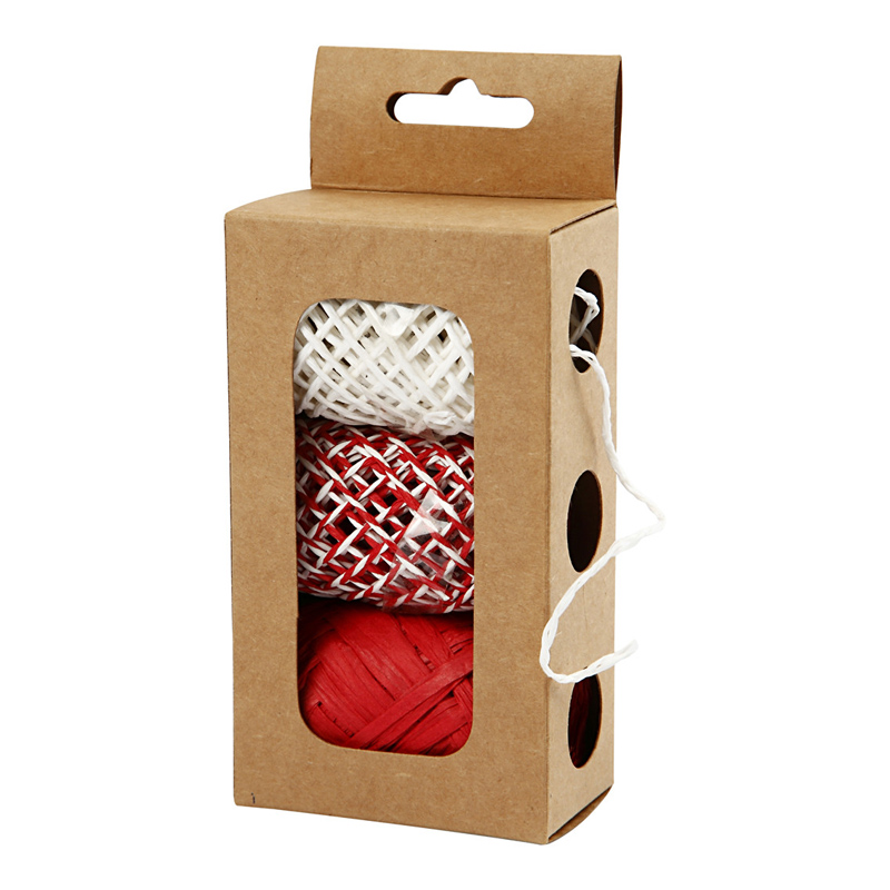 Papierkordel 2mm stark, in rot/weiß, 3x 10m