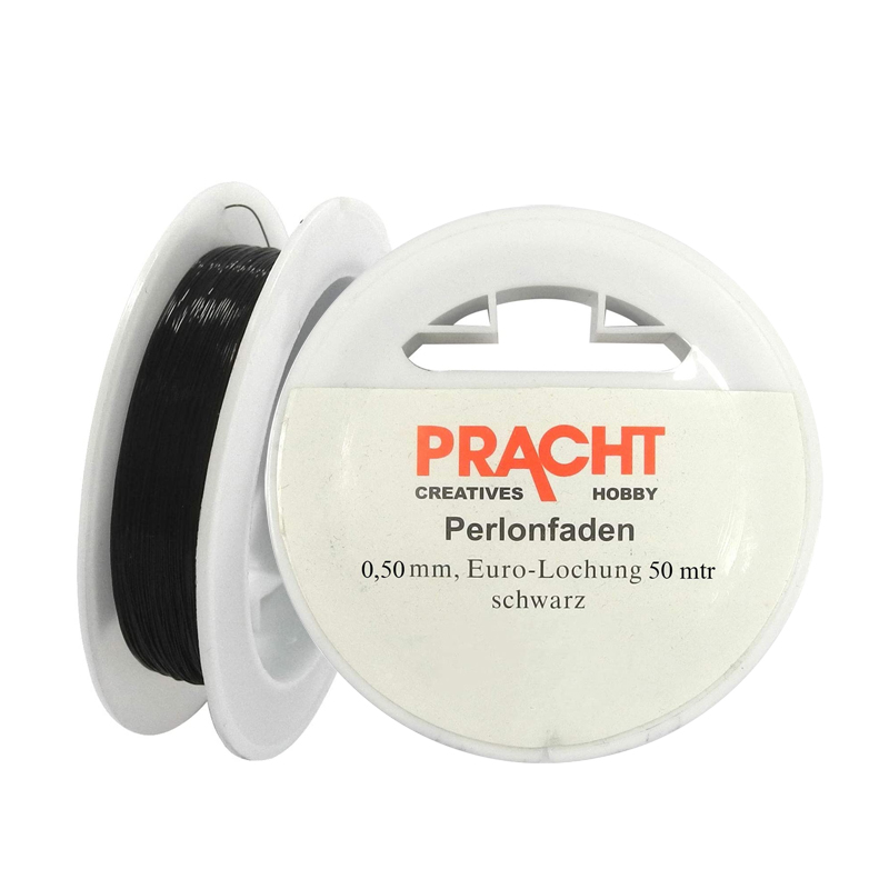 Perlenschnur, Perlonfaden Nylonschnur oder Dekoschnur schwarz, 0,50mm, 50m-Rolle (nicht dehnbar), B-Ware*