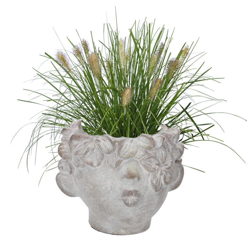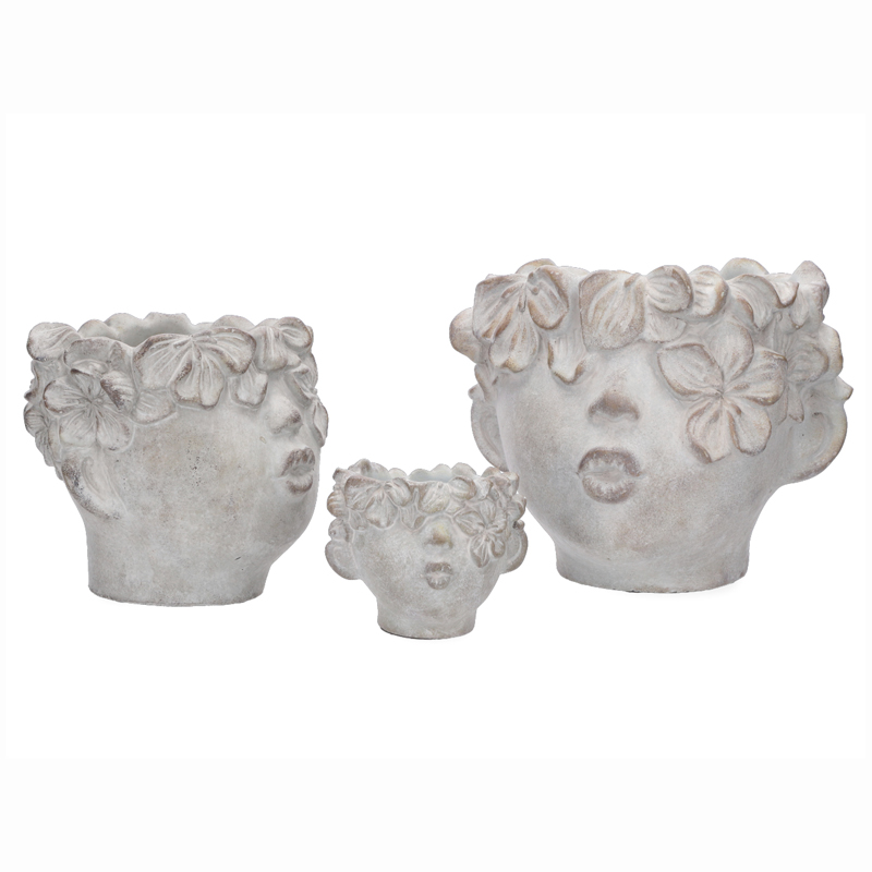 Blumentopf mit Gesicht, 3 Größen, Flora Betonfinish natur, 1 Stück