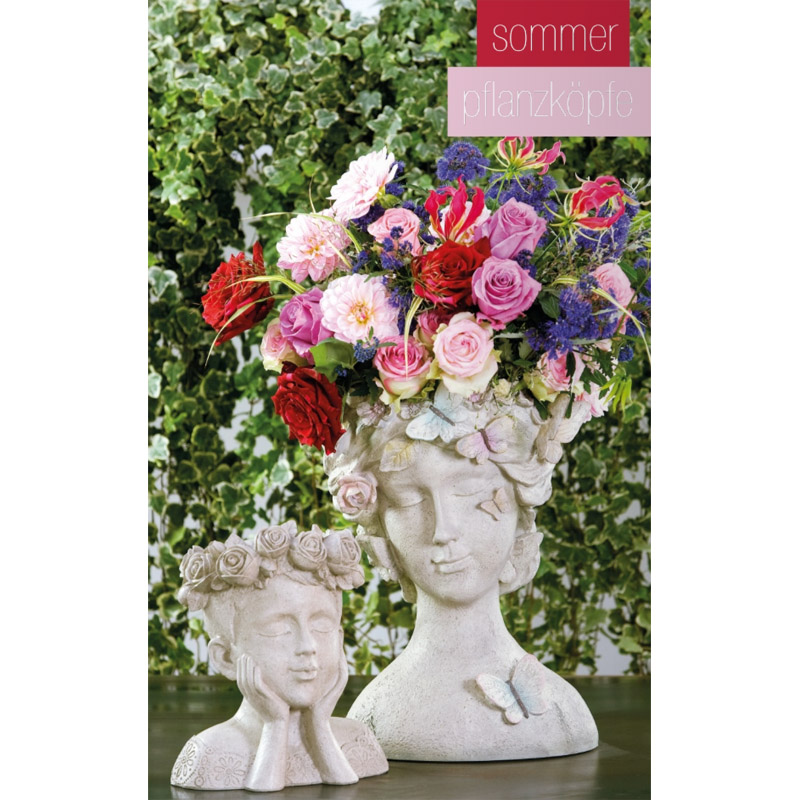 Diese Töpfe ändern je nach eingetopfter Pflanze ihren Look. Mit Blumen in passender Farbe sieht die Dame wie ein Blumenmädchen aus. Mit eingetopftem Gras wie eine stylische Ikone aus den 80ern. Ein absoluter Hingucker für innen und aussen. (Bitte im Winter reinnehmen)