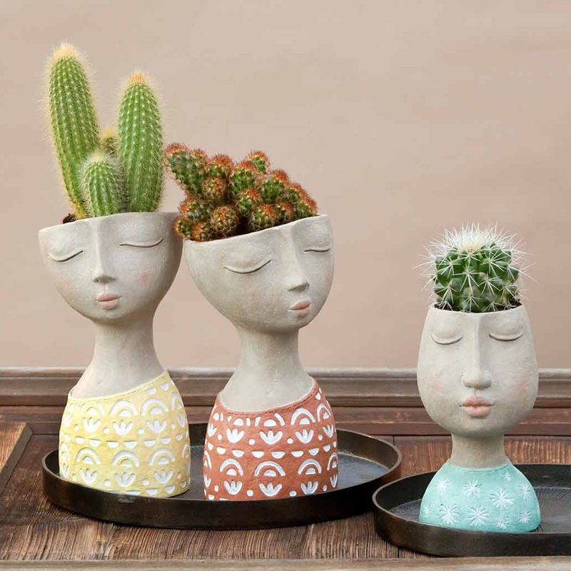 Diese Töpfe ändern je nach eingetopfter Pflanze ihren Look. Mit Blumen in passender Farbe sieht die Dame wie ein Blumenmädchen aus. Mit eingetopftem Gras wie eine stylische Ikone aus den 80ern. Ein absoluter Hingucker für innen und aussen. (Bitte im Winter reinnehmen)