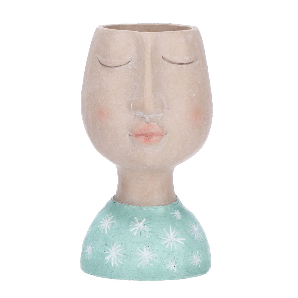 Blumentopf mit Gesicht, ca. 12cm x 21cm hoch, Paola türkis 1 Stück