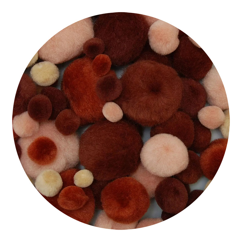 Pompoms in Brauntönen, ca. 10-40mm im Durchmesser, 100 Stück unverb. gemischt