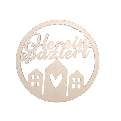 Ring mit Schriftzug aus Holz mit Häusern, "Hereinspaziert", ca. 15cm, 1 Stück