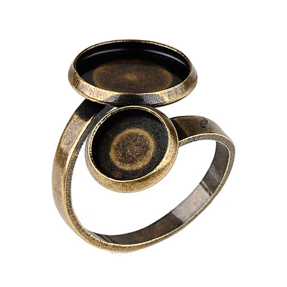 Ringrohling/Ringschiene bronze für Glassteine, für 12mm + 8mm Cabochons, Fingergröße verstellbar