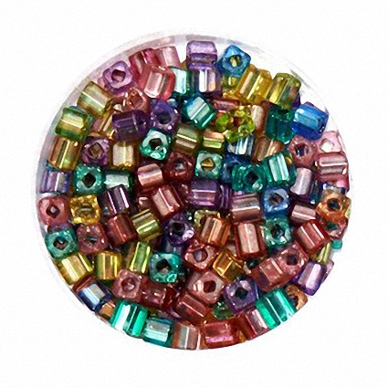 Rocailles in bunt Silbereinzug Würfel, ca. 3,4mm, 17g Dose