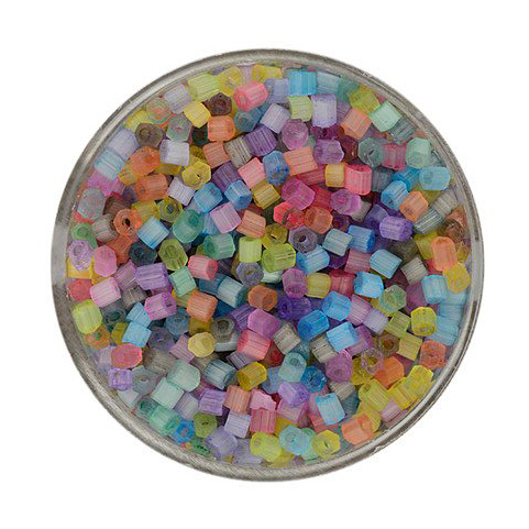 Eine schöne Mischung von Rocailles in Würfelform. Dieser pastellige Softmix lässt sich wunderbar zwischen anderen Rocailles einarbeiten und bringt Farbe in das Schmuckstück. Die Farbe ist mattiert.