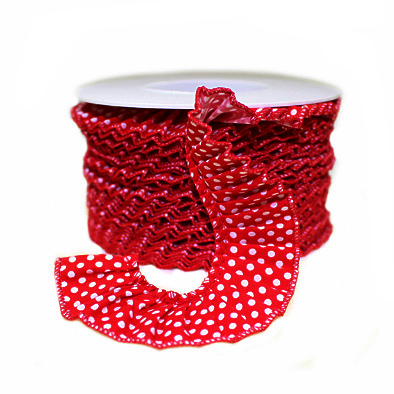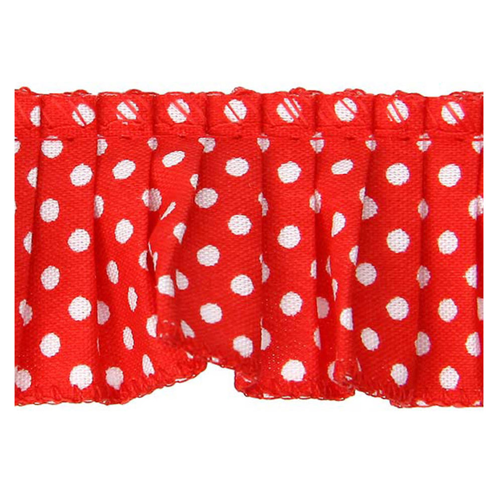 Elastisches Rüschenband in Baumwolloptik rot mit weißen Punkten, ca. 30mm breit, Preis pro Meter (Schnittware)