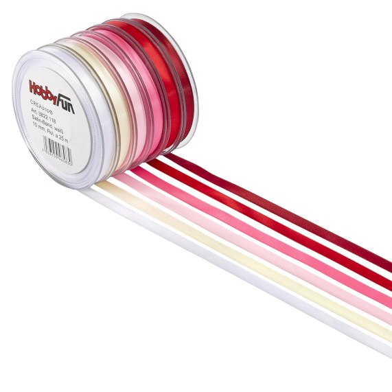 Das Satinband in 6mm gibt es in vielen verschiedenen Farben. Auf 1 Rolle befinden sich 50m. Die gleichen Farben erhalten Sie auch in 3mm. Die Farbe fuchsia ist von einem anderen Hersteller. Siehe Einzelabbildung.