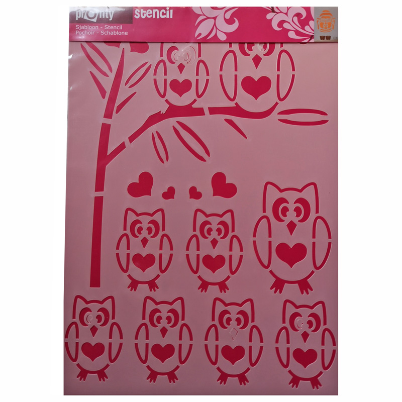 Hobby-Schablone Eulen mit Ast, ca. A4, aus PE-Material, 1 Stück