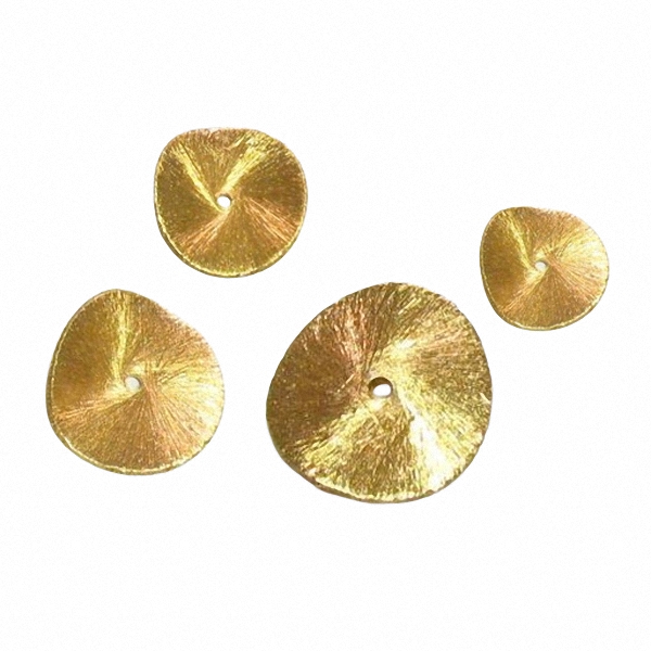 Diese runde Silberperle ist aus echtem 925er Silber und zusätzlich vergoldet. Die Scheibe ist gewellt und hat eine gebürstete Oberfläche. Die Größe ist 8-16mm und die Bohrung ist ca. 1-2mm.