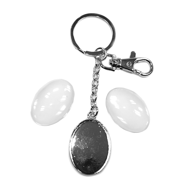 Ovaler Schlüsselanhänger für 2 Cabochons in silber, inklusive 2 Glassteine in 30x40mm, 1 Stück MIT Cabochons