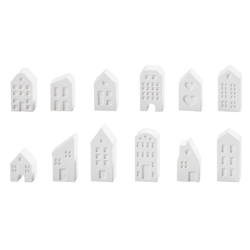 Gießform aus Silikon für Keraflott, Kerzen oder Seife, 12 Häuser im Set