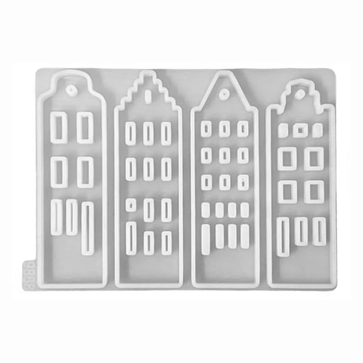 Gießform aus Silikon für Keraflott, Kerzen oder Seife, 4 alte Häuser