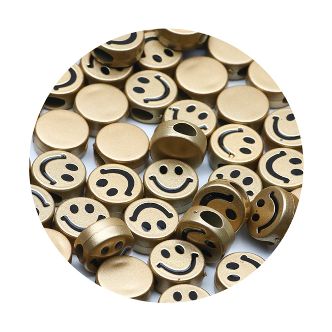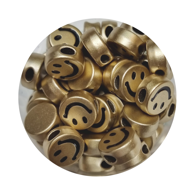 Diese lustigen Smileys sind die ideale Ergänzung zu unseren Buchstabenperlen in 12mm. Die Farbe ist in einem wunderschönen matten gold und die Verarbeitung hervorragend.