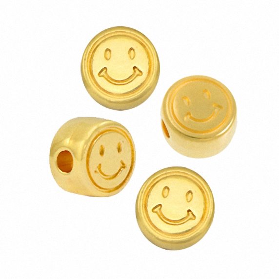 Metall-Smiley-Perle vergoldet, ca. 7mm, passend zu unseren Buchstabenperlen, Preis pro Stück