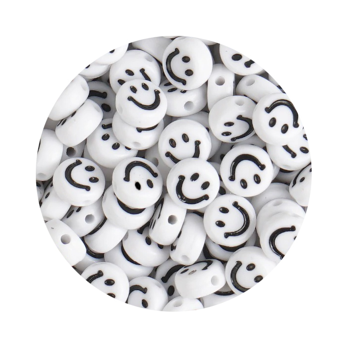 Die weißen lustigen Smileys sind die ideale Ergänzung zu unseren Buchstabenperlen in 7mm. Mit diesen Smileys zaubern sie bei Kindern ein Lächeln ins Gesicht! Einfach auffädeln und Spaß haben. Diese Emojis haben alle eigene Bedeutungen - unserer strahlt um die Wette! Wer also Freude ausdrücken möchte, der liegt mit unseren Smileys genau richtig!