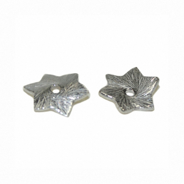 Diese sternförmige Silberperle ist aus echtem 925er Silber und ist gewellt und hat eine gebürstete Oberfläche. Die Größe ist 10mm und die Bohrung ist ca. 1-1,5mm.