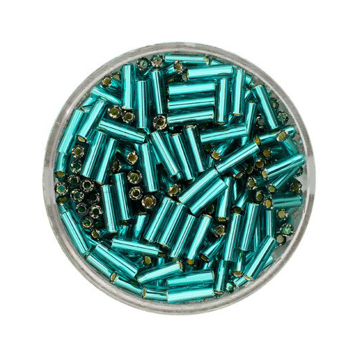 Glasstiftperlen türkis Silbereinzug, ca. 6mm lang, 15g in der Dose