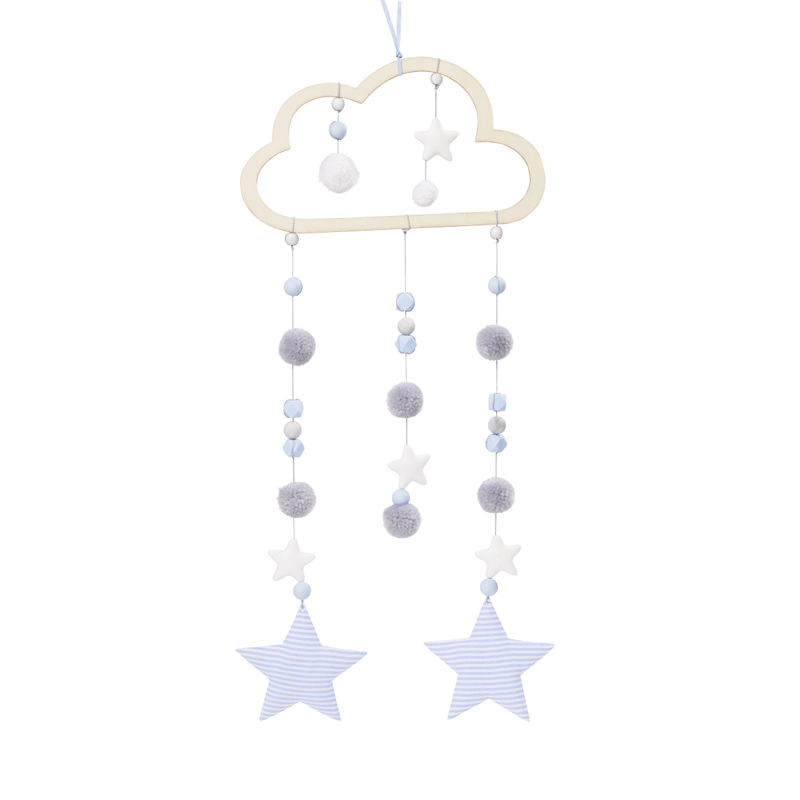 Die Stoffsterne sind mit Füllwatte ausgestopft und haben ein Loch zum Aufhängen. Die Sternchen gibt es in rosa oder hellblau gestreift. Ein wirklich hübsches Highlight für Mobilés oder Kinderwagenketten.