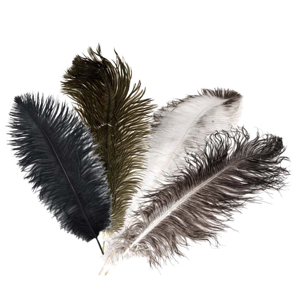 Sie changieren zwischen weiß, creme, braun und dunkelbraun und sind super flauschig und voluminös. Sie wirken sehr edel und sind mit keinen anderen Federn vergleichbar. Unsere Straußenfedern sind naturbelassen: beige, braun, grau, dunkelgrau bis schwarz. Der Kiel ist schmal und weich