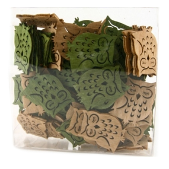Streuartikel Eulen aus Holz (Laserschnitt), ca. 35mm braun/grün, je 1 Stück pro Farbe