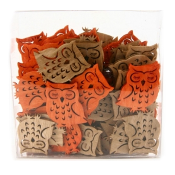 Streuartikel Eulen aus Holz (Laserschnitt), ca. 35mm orange/natur, je 1 Stück pro Farbe