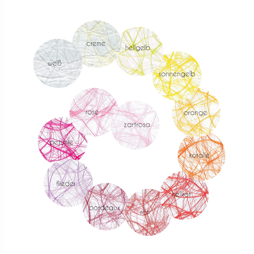 Die Röttöne beinhalten alle Gelb, Orange, Rot, Rosa und Lilatöne.