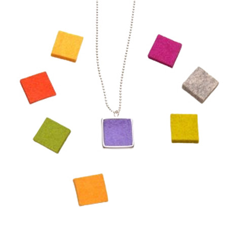 Wechselkettenanhänger & Kugelkette eckig, ca. 25x25mm, mit 26 Farben Wollfilzeinsätze, 1 Set