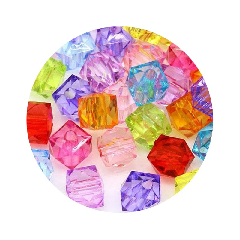 Diese süßen Würfelperlen sind ideal um Namen abzugrenzen, als Zwischenperle oder als Abschlussperle an Ketten oder Armbändern etc. Die Würfelperlen sind facettiert und transparent. Sie erhalten 5 Stück bunt gemischt.